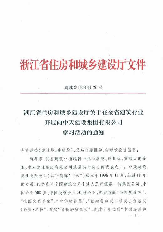 《浙江省住房和城乡建设厅关于在全省建筑行业开展向BJL平台建设集团有限公司学习活动的通知》